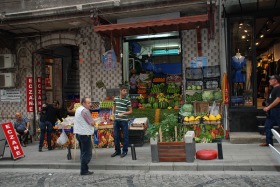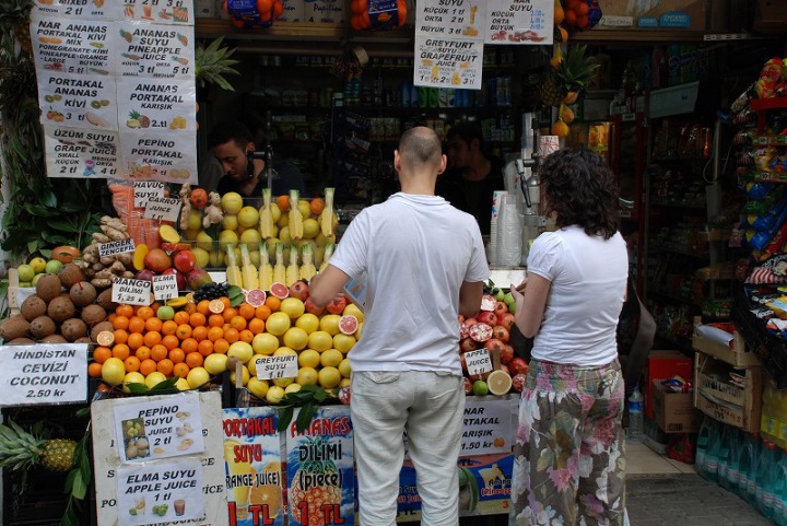 裏通りの小さな果物屋で一目でわかるカラフルな陳列が日本にはないと感じました