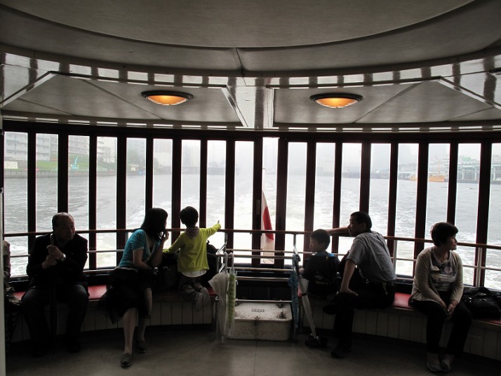 遊覧船の後部で各自が外の景色を眺めていました