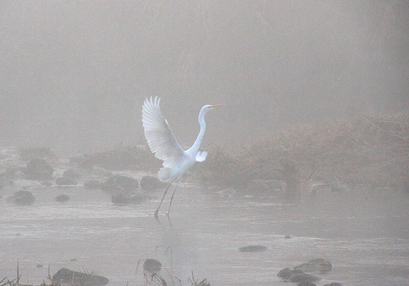 霧は不要なものを隠してしまう。普段背景にあったものが消えて単純化する。